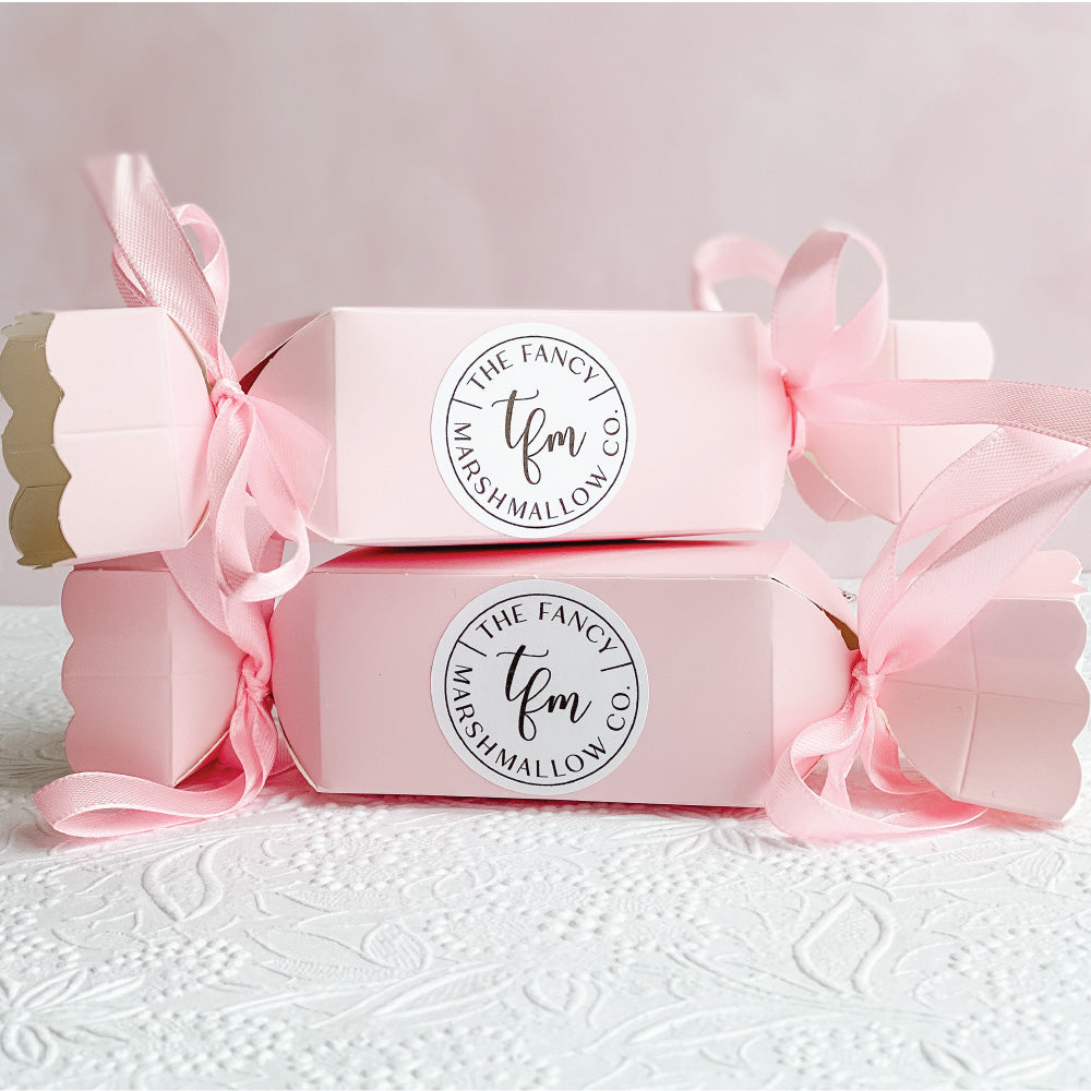 Our bon bon boxes are the perfect favor for weddings, showers, parties, or corporate events. Each box includes two pillowy, handcrafted marshmallows in the flavor of your choice, beautifully packaged and ready to wow your guests. The label is fully customizable with your event details or company logo, making it a sweet and personal touch for any celebration.