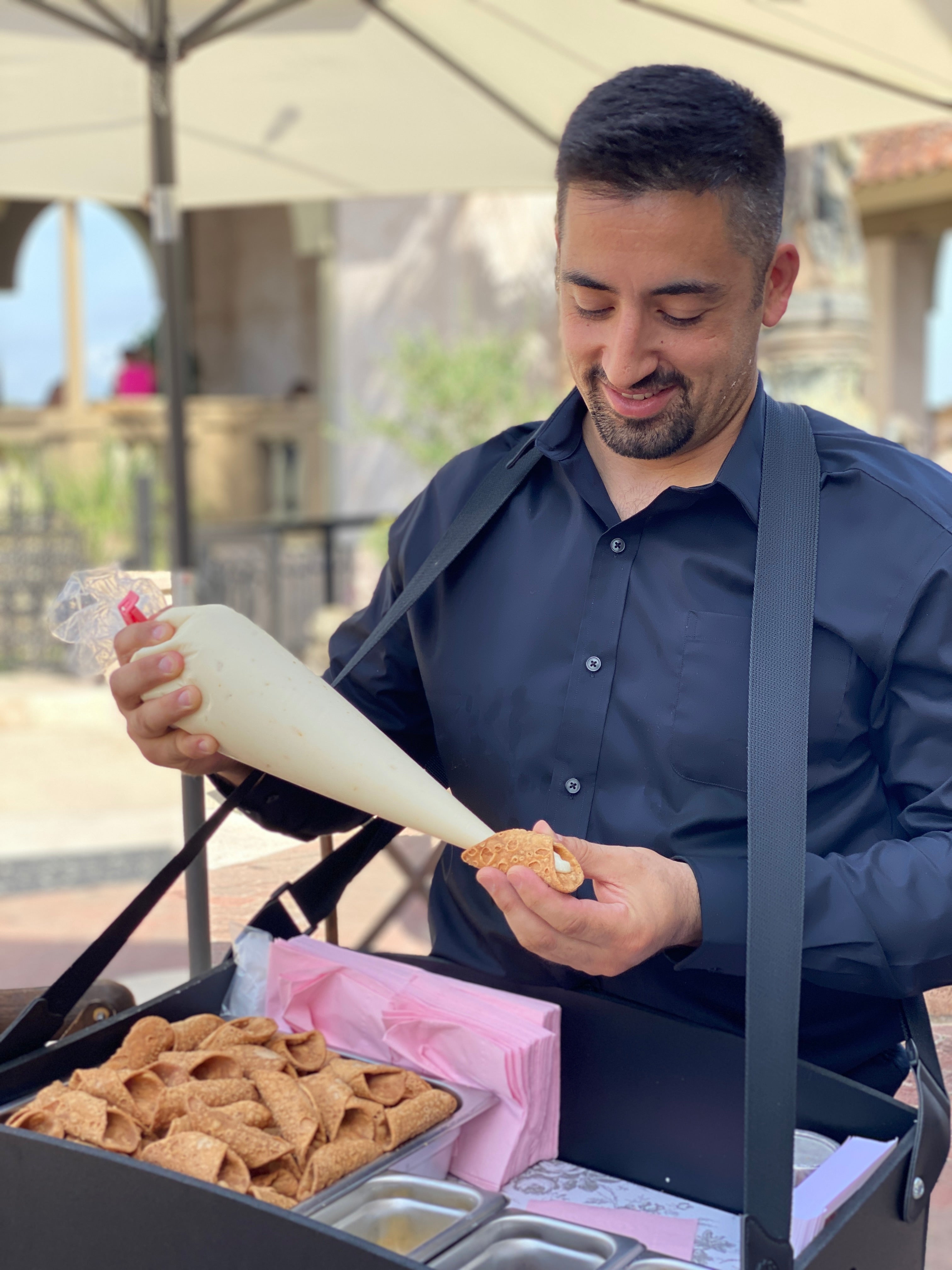 Add a touch of elegance and fun to your wedding with our Cannoli Service, where a charming attendant walks among your guests, filling mini cannolis on request. Imagine the delight as your friends and family indulge in these freshly prepared, creamy treats. It's an interactive and memorable experience that will have everyone talking!